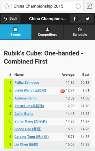 2015中国国家锦标赛,王佳宇使用魔域傲龙增强版魔方,以平均12.77秒打破三阶单手的亚洲纪录!