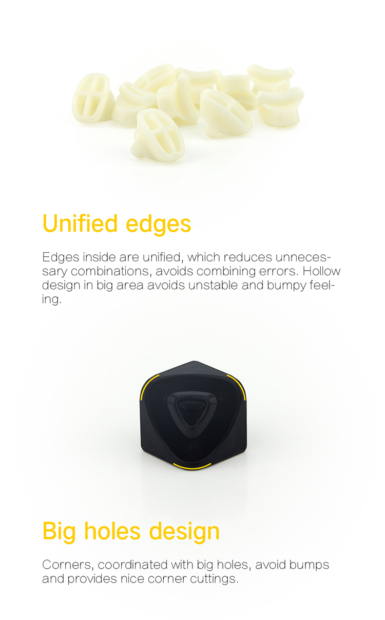 Unified edges Edges inside are unified, which reduces unnecessary combinations, avoids combining errors. Hollow design in big area avoids unstable and bumpy feeling.