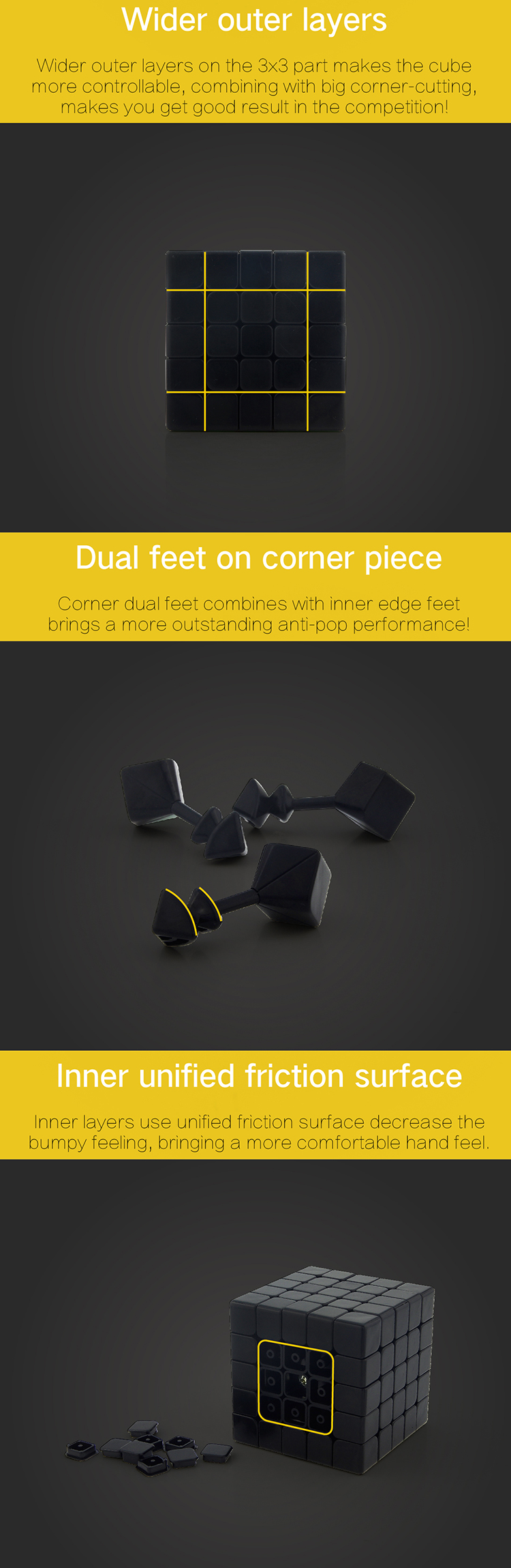 Wider outer layers on the 3x3 part makes the cube more controllable, combining with big corner-cutting, makes you get good result in the competition!