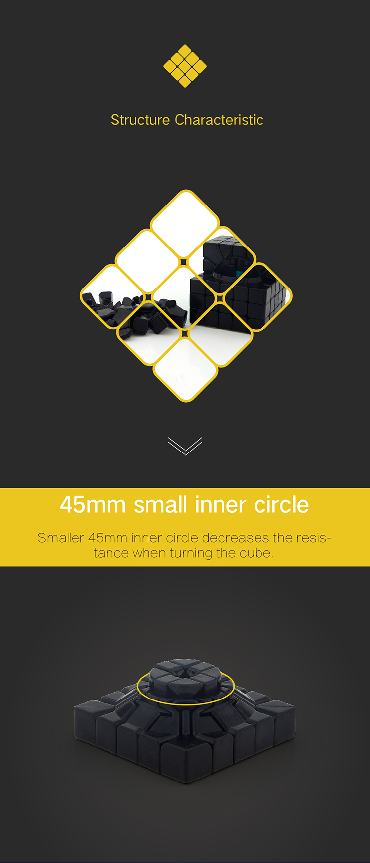 Smaller 45mm inner circle decreases the resistance when turning the cube.