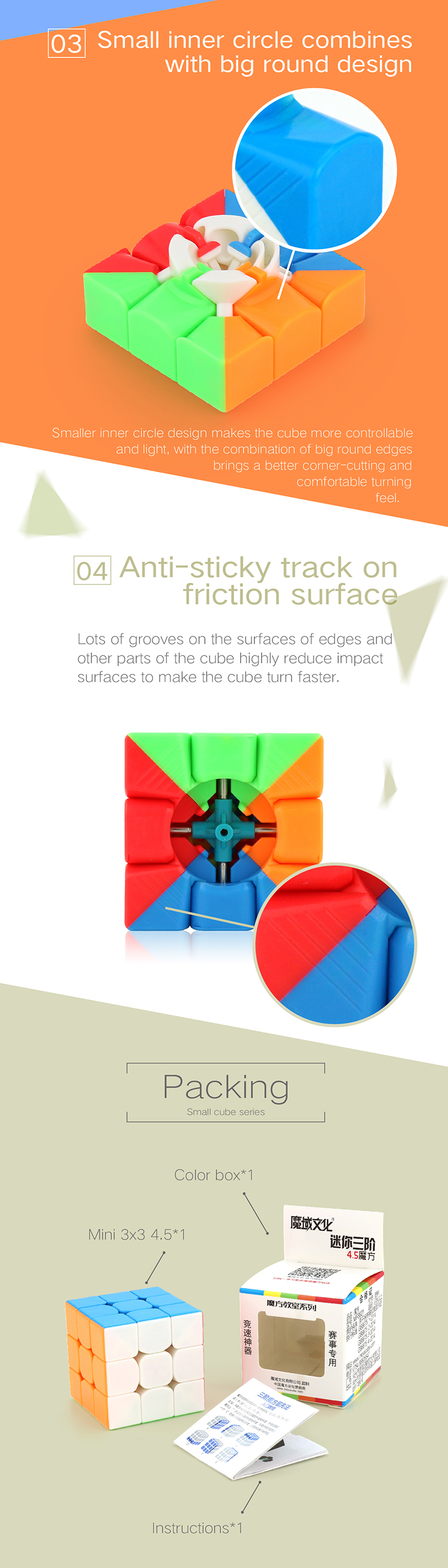 This is a 45mm 3x3, which is small and exquisite, convenient to carry and keep, to satisfy different cuber’s demand.