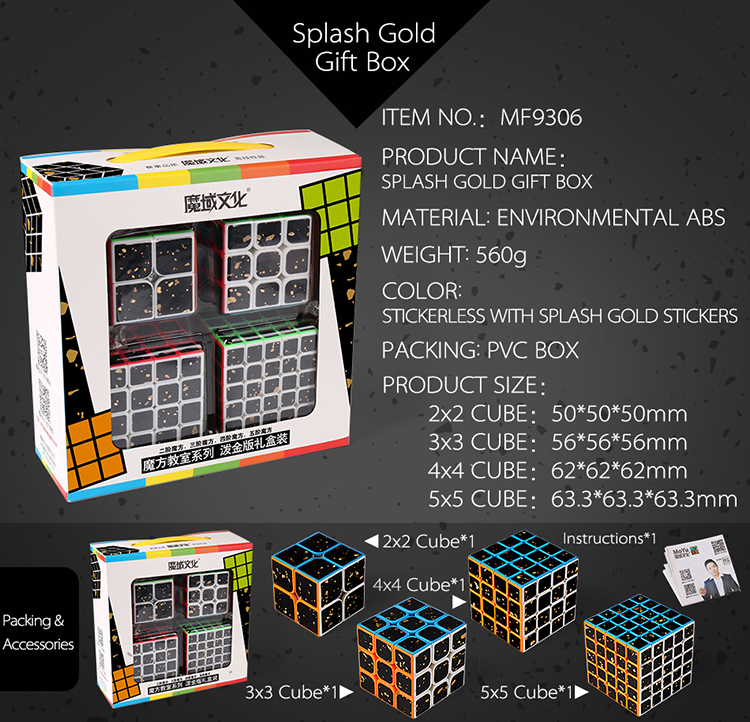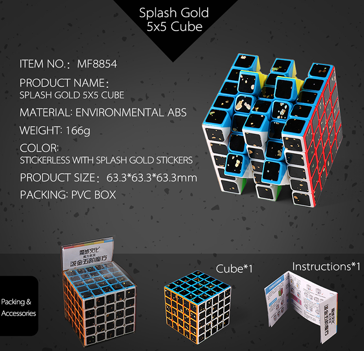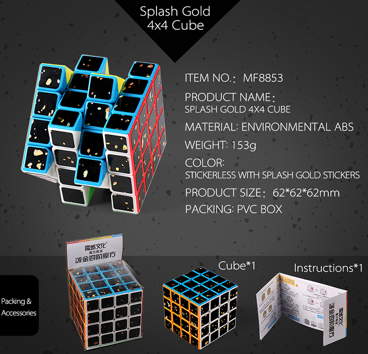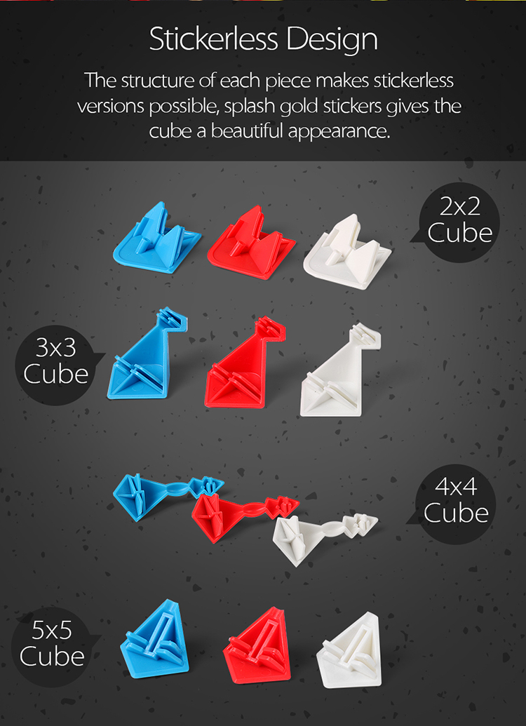 The structure of each piece makes stickerless versions possible, splash gold stickers gives the cube a beautiful appearance.