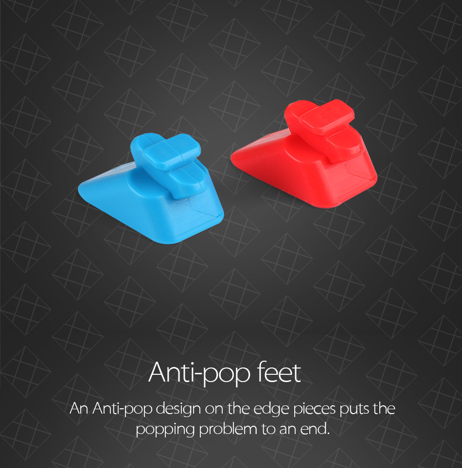 Anti-pop feet. An Anti-pop design on the edge pieces puts the popping problem to an end.