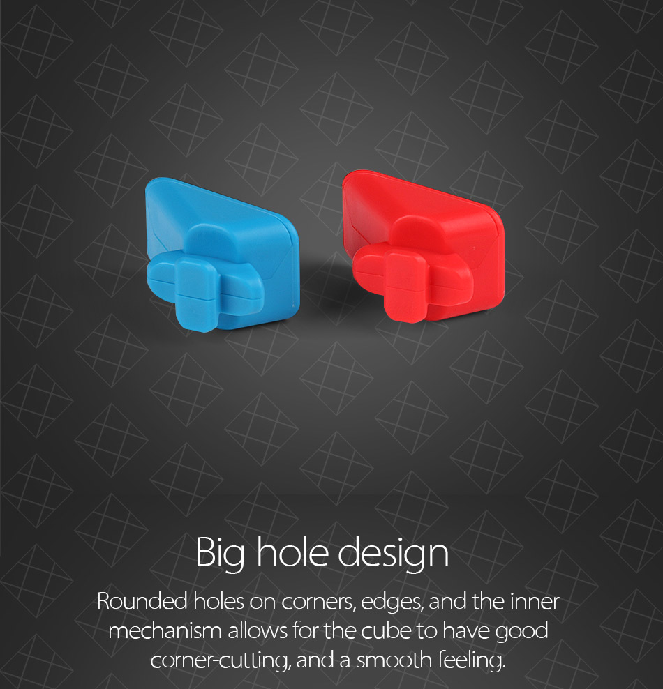 Big hole design Rounded holes on corners, edges, and the inner mechanism allows for the cube to have good corner-cutting, and a smooth feeling.