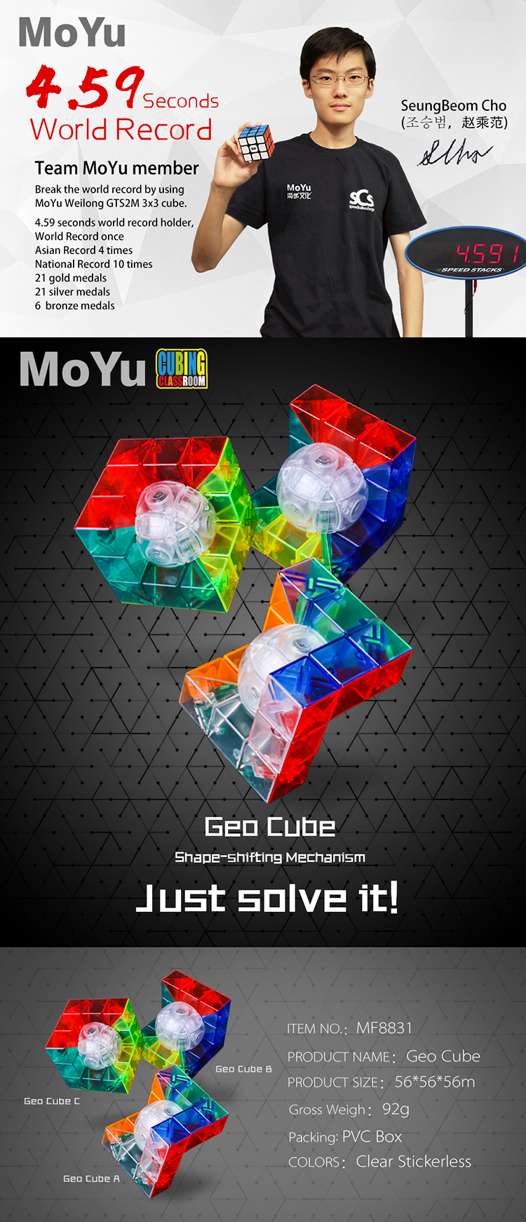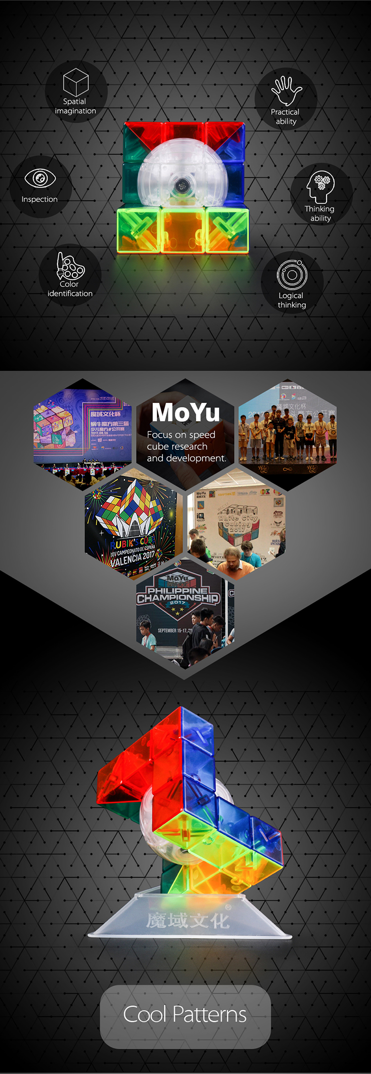 Shape-shifting Mechanism Unique structure makes the cube has different exteriors after scrambled, which is more challenging and fun to solve.