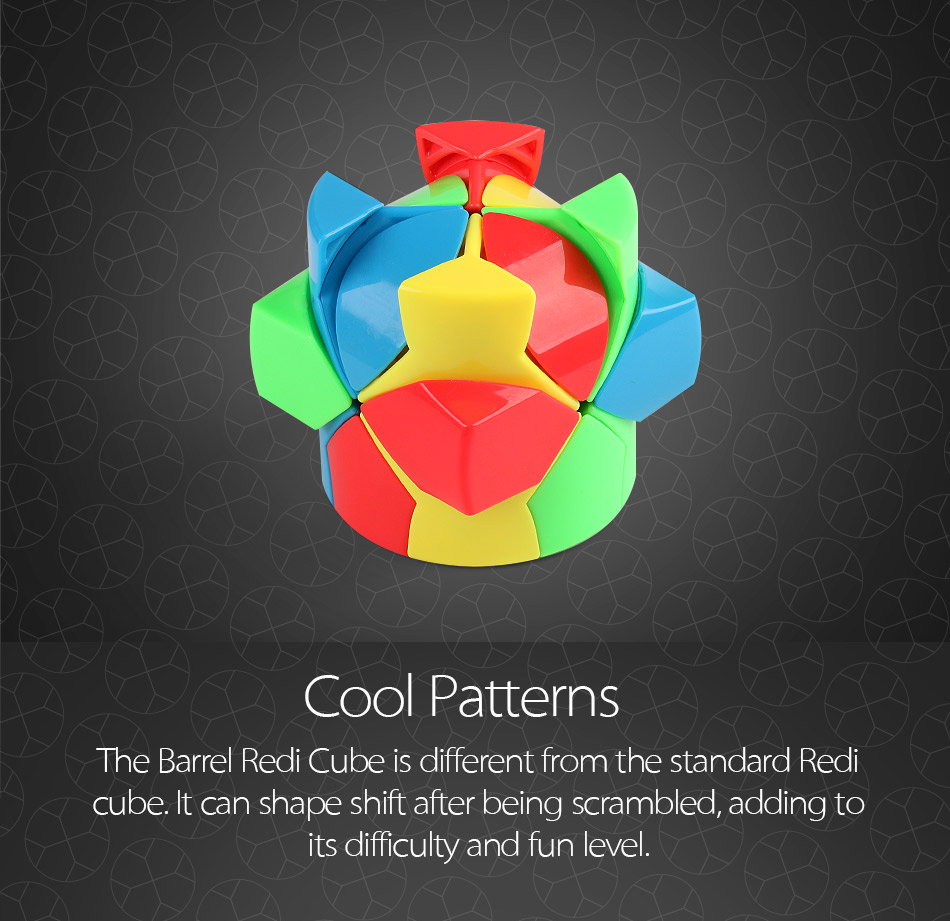 Cool Patterns. The Barrel Redi Cube is different from the standard Redi cube. It can shape shift after being scrambled, adding to its difficulty and fun level.