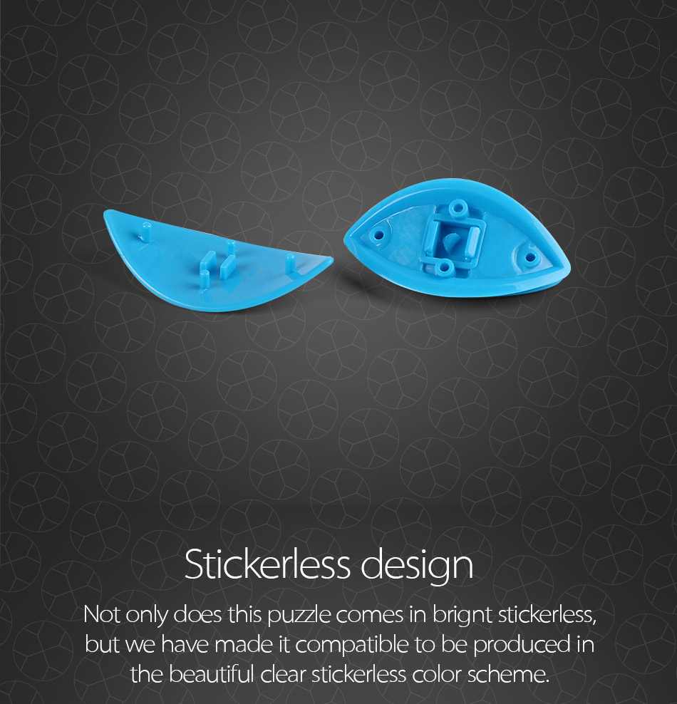 Stickerless design. Not only does this puzzle comes in brignt stickerless, but we have made it compatible to be produced in the beautiful clear stickerless color scheme.