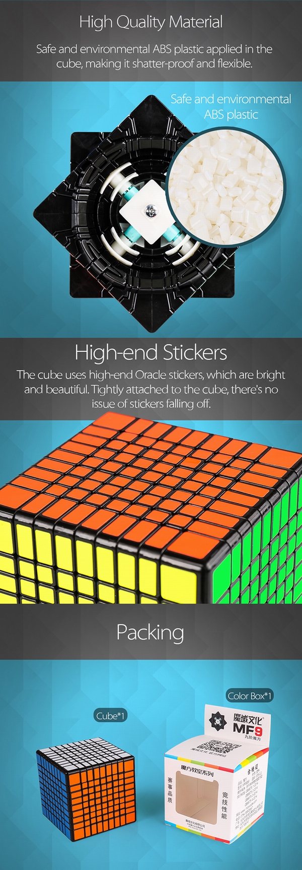 High Quality Material Safe and environmental ABS plastic applied in the cube, making it shatter-proof and flexible.