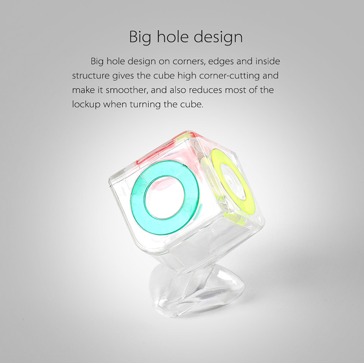 Big hole design Big hole design on corners, edges and inside structure gives the cube high cornercutting and make it smoother, and also reduces most of the lockup when turning the cube.