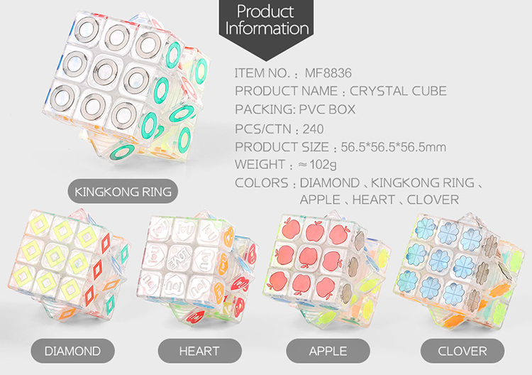 The cap on the cube has multiple patterns like Kingkong ring, apple, diamond, clover, giving more choices for customers!