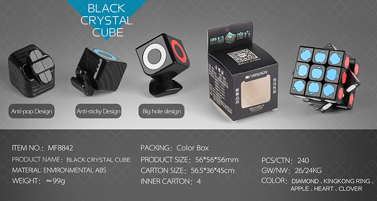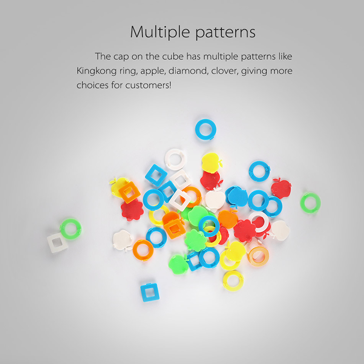Multiple patterns The cap on the cube has multiple patterns like Kingkong ring, apple, diamond, clover, giving more choices for customers!