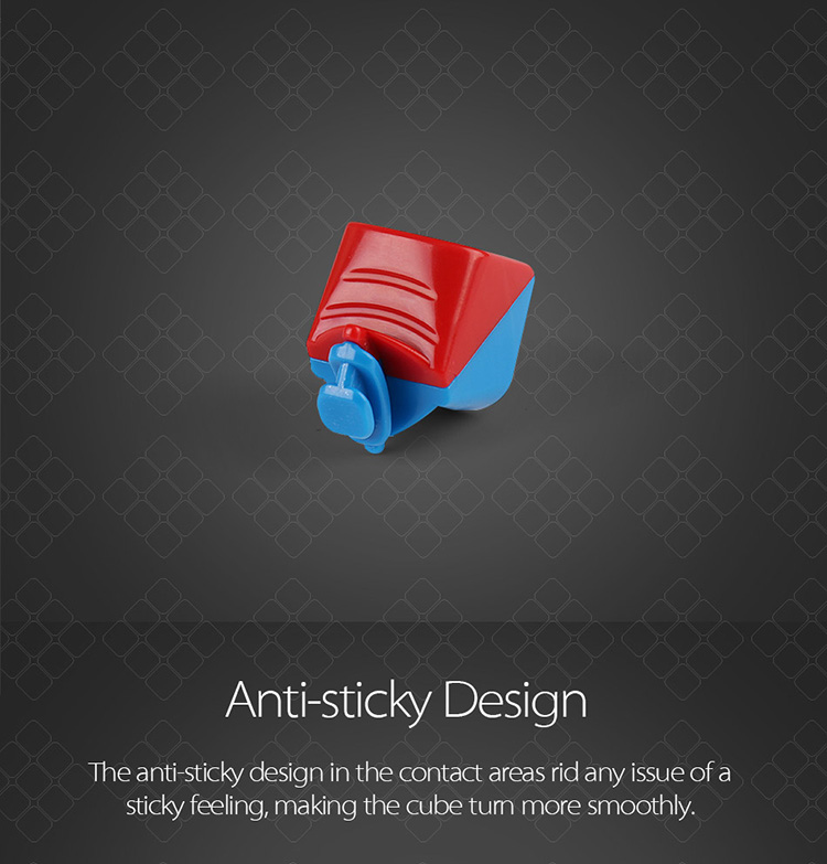 Anti-sticky Design The anti-sticky design in the contact areas rid any issue of a sticky feeling, making the cube turn more smoothly.